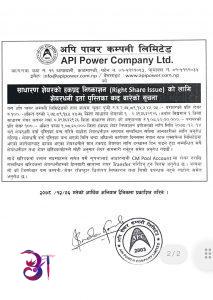 कम्पनीले १०ः३.९३६ अनुपातमा १ अर्ब ८ करोड ६० लाख रुपैयाँ बराबरको १ करोड ८ लाख ६० हजार कित्ता हकप्रद सेयर बिक्री गर्न लागेको हो । यसमा बिक्रीप्रबन्धकको काम मुक्तिनाथ क्यापिटलले गर्नेछ । कम्पनीले हकप्रद सेयर बिक्री गर्न धितोपत्र बोर्डबाट अनुमति पाइसकेको छ ।