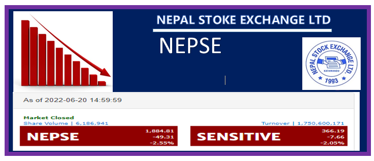 लगातार घटेको नेप्से १९ महिना यताकै न्यून बिन्दुमा झरेको हो । ०७७ मंसिरमा २०७३ को बुलिस मार्केटले कायम गरेको १८८१ अंक पार गरेको नेप्से पुनः सोही अंकको नजिक आएर बन्द भएको छ ।