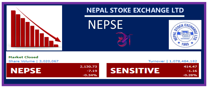नेप्से घटेसँगै बुधबारको तुलनामा कारोबार रकम घटेको छ।आजको बजारमा १ अर्ब ६४ करोड बराबरको सेयर कारोबार भएको छ। बुधबार १ अर्ब ७३ करोड भन्दा बढीको कारोबार भएको थियो। सेन्सेटिभ इन्डेक्स पनि सामान्य अंकले ओरालो लागेको छ।