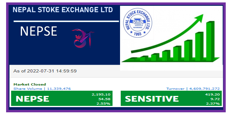 काठमाडौं- साताको पहिलो दिन नेप्सेले सकारात्मक सन्देश दिएको छ ।सेयर बजार सूचक नेप्सेमा काराबार रकमले पनि क्रमशः नयाँ उचाई लिंदै गएको छ । आज नेप्से सूचक ५४.५८ अंकले बढेर २१९५.१० अंकमा आइपुगेको छ । ४ अर्ब ६० करोड रुपैयाँभन्दा बढीको सेयर कारोबार भएको छ । आज खरिदबिक्री रकम पनि क्रमशः वृद्धि हुँदै गएको छ ।
