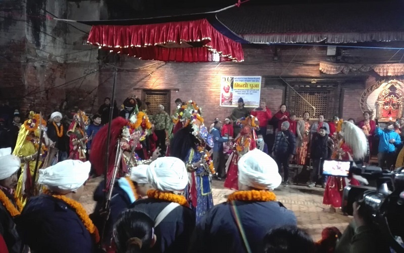 तत्कालीन समयमा राजा र देवताबीच खड्ग साटासाटको रुपमा लिइने यो तान्त्रिक नाच हरेक १२ वर्षमा देखाउने गरिन्छ । बडादशैँको टीकाको दिन टेकुको पचली भैरव मन्दिरबाट शुरु भएको यो नाच अब आउने बडा दशैँको अष्टमीका दिन समापन हुन्छ ।