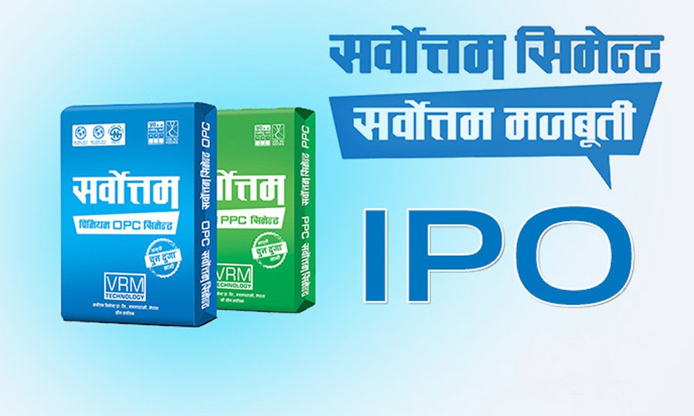 सर्वोत्तम सिमेन्टले फागुन १३ गतेदेखि निष्काशन तथा बिक्री खुला गरेको आईपीओमा आवेदन दिने हिजो अन्तिम दिन थियो । कम्पनीले कुल २७ लाख ७६ हजार ७६ कित्ता मात्रै बाँडफाँट गर्नेछ । न्यूनतम ५० कित्ताका दरले सेयर बाँडफाँट गर्नुपर्ने व्यवस्था छ।